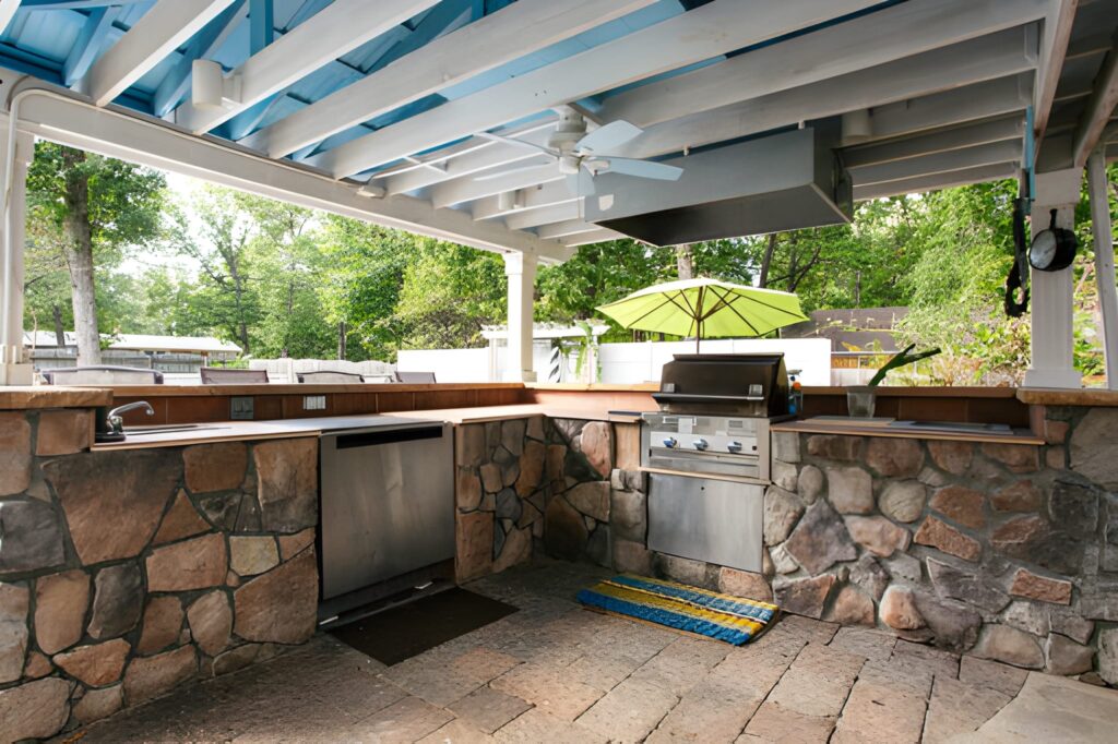Stylish and functional outdoor cooking and entertainment spaces featuring custom built countertops.